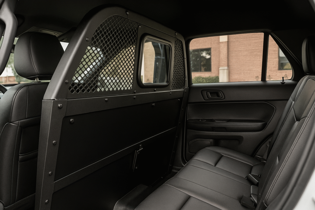 We install law enforcement-grade partitions that prevent reach-through, kicks, or impact to front-seat officers. Rear panels are reinforced, scuff-resistant, and made from easy-clean polymer or powder-coated aluminum — eliminating soft-point access for detainees.